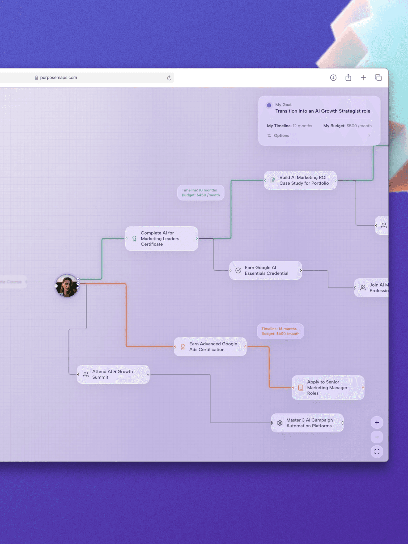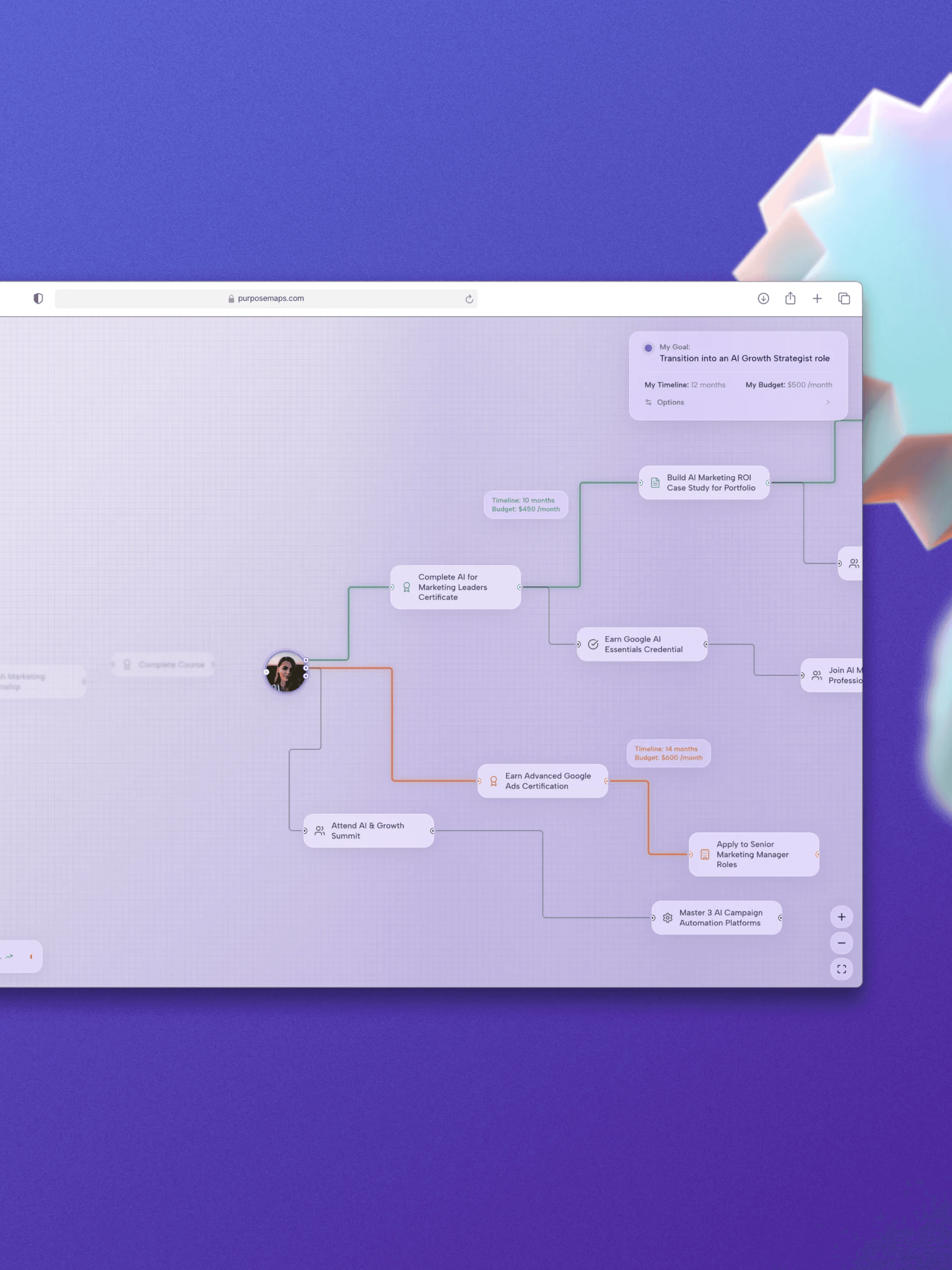 The navigation canvas shows you every possible path to your long-term goals.